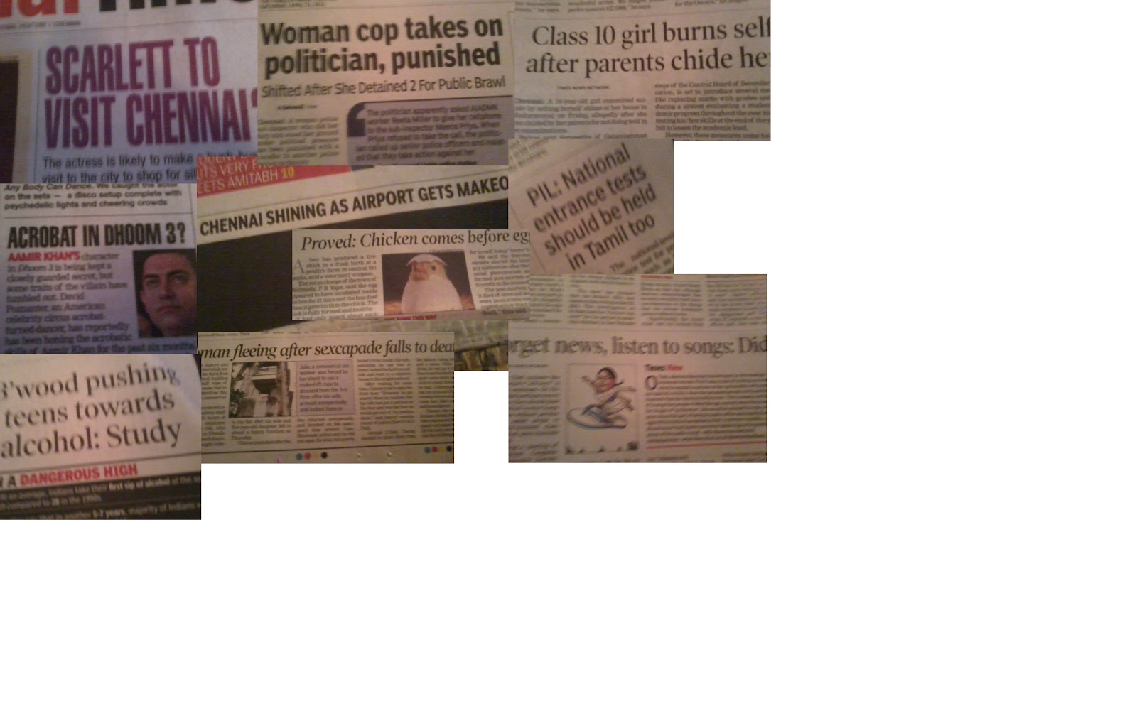 So its finally proved chicken came before egg, but who has been funding these kinds of researches. I mean, how do you even do the documentation for such studies. So tamilians want national entrance tests to be held in tamil, next thing you know they are asking for tamil as study language, mandatory in every college or may be get an option for it. I am not for hindi but at least be reasonable, besides most of the south guys are is US or Dubai. Some honest woman cop takes on politician and as usual is punished. Did u hear about the politician's brother who was murdered and within hours police encountered his murderers. Thats fast justice for VIPs. Then there is Acrobat in dhoom 3, aamir khan plays the villian, there are the usuals abhishek, uday and may be some common side chicks like sonam deepika, they even have fans making fake trailers stolen from nfs. Its gonna be a disaster, a copy from several hollywood movies. Finally chennai airport gets a makeover from outside and we get to pay for it, whether you are in arrival, departure , visiting section you get to pay 500 bucks for it ooh sounds so crappy of government. So there was this woman and some other woman's husband and they were doing it and wifey comes, so she jumps out of the window and dies, should have gone for the hotel i guess and now the wife knows too. And another teenager burns herself, whatz with teenagers anyways, i mean they are killing, getting killed , running away with professors, may be we need better parents or people should stop having kids if god has decided to make this vulnerable. Or may be we can blame this too on bollywood. Only thing I think bollywood should be blamed for is making stupid movies with no scripts and no actors, just mannequins like john, sonam, deepika, nargis, imran etc etc. On the top of that , we pay to see, entertainment tax exists too.